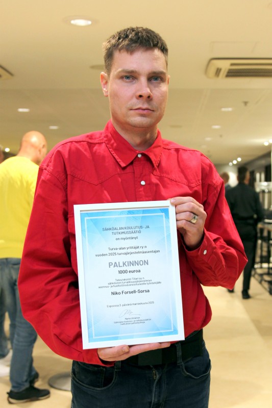 Turva-alan yrittäjät ry:n Vuoden 2025turvajärjestelmäasentaja -palkinto sähköisten turvallisuusjärjestelmien asennuksissa tai huollossa ansioituneelle työntekijälle on myönnetty Niko Forsell-Sorsalle. Hän on työskennellyt Teleurakointi Titari oy:n Kouvolan-toimipisteessä vuodesta 2011 vastuualueenaan Kouvolan, Lappeenrannan ja Imatran alue.
